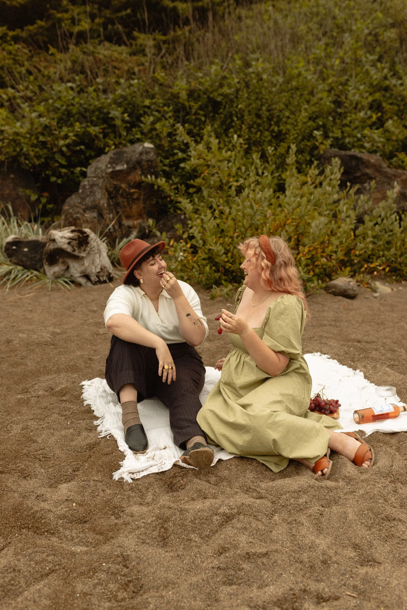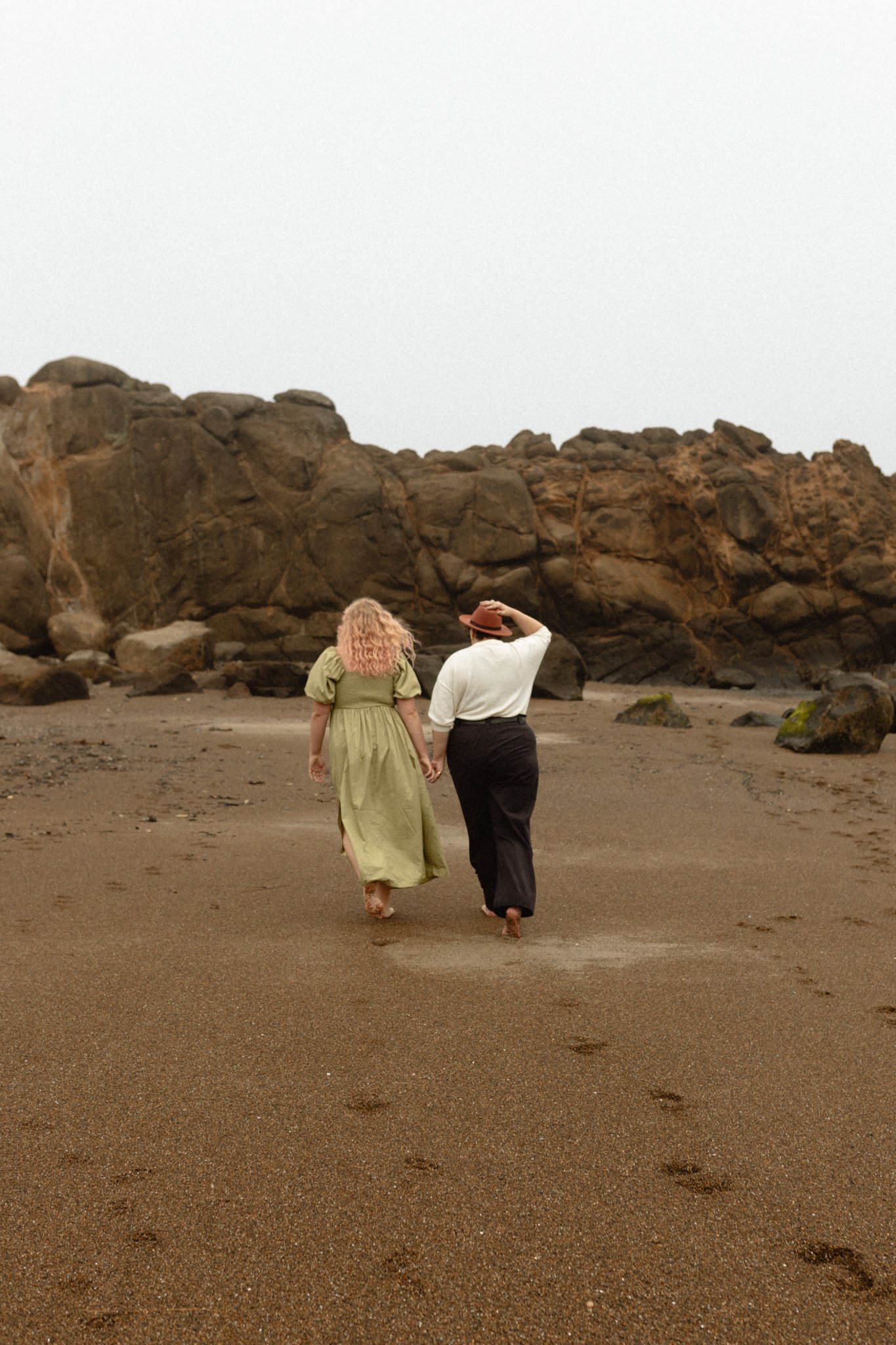Abby (she/her) + Silas (they/them) spent the dreamiest morning with me on the Oregon Coast during the Dawn Photo/ Love Hard Honey content weekend. It feels so surreal to me that I can travel to photograph couples THIS vibey in places THIS stunning for my job?! This entire session feels like a scene in the most epic romance novel and I am HERE for it.
